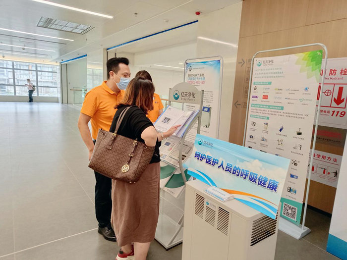 為保持潔凈空氣,呵護醫護人員的呼吸健康,億天凈化在設立的展位上展出了智能空氣凈化裝置、環境檢測儀器等產品,向專家學者、行業大咖展示億天凈化創新領先的技術產品和扎實優秀的落地經驗。