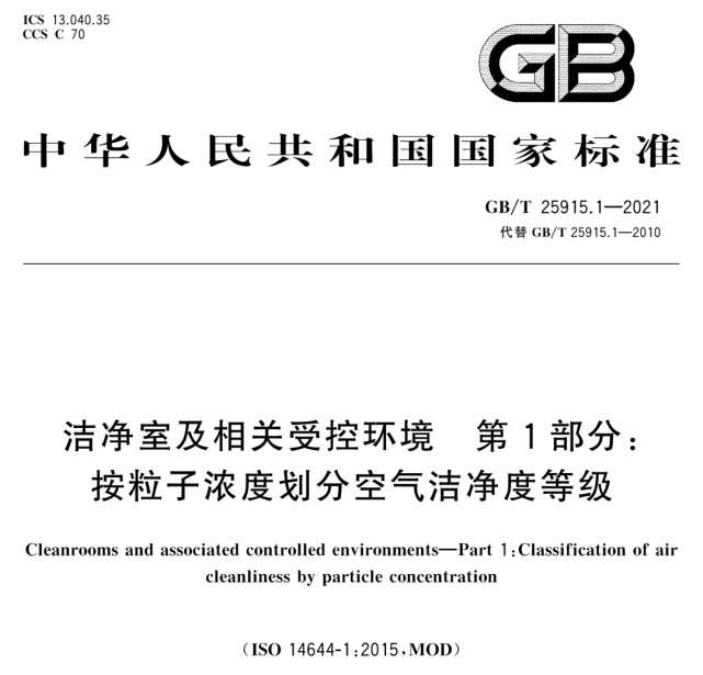GB/T 25915《潔凈室及相關(guān)受控環(huán)境-1:空氣潔凈度等級》發(fā)布,3月1日起實(shí)施