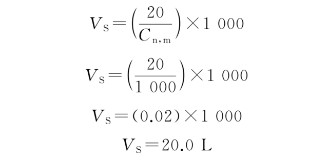 文件給出了確定單次采樣量和各點(diǎn)的采樣時間的方法:所選最大粒徑的粒子濃度恰好為規(guī)定的ISO 級別上限時,在各采樣點(diǎn)所采的空氣量足以檢測到至少20個粒子。每個采樣點(diǎn)的單次采樣量VS,按公式(A.2)計算。