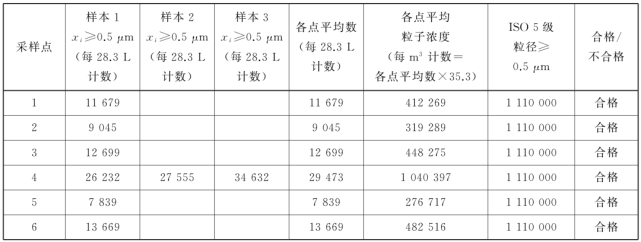 注:潔凈度水平應(yīng)以ISO 等級濃度來描述,它代表單位容積空氣內(nèi)最大允許粒子濃度。