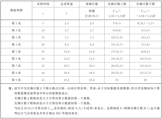 表E.1給出了所允許的非整數(shù)潔凈度等級。粒子測量上存在的不確定性使得級別增加不宜低于0.5,表中的腳注說明了由于采樣和粒子采集的局限性而帶來的限制條件。