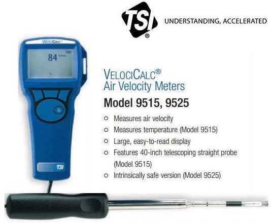 VELOCICALC® 數字風速計 9515 是經濟型的數字風速計。專業人員發現 9151 是通風柜,噴淋室,或通風系統檢查面風速測量的理想工具。型號 9515 擁有一個 40 英寸( 101.6 厘米)的伸縮探頭可用于一些難以觸及的測量點。 9515 還可用于測量溫度。
